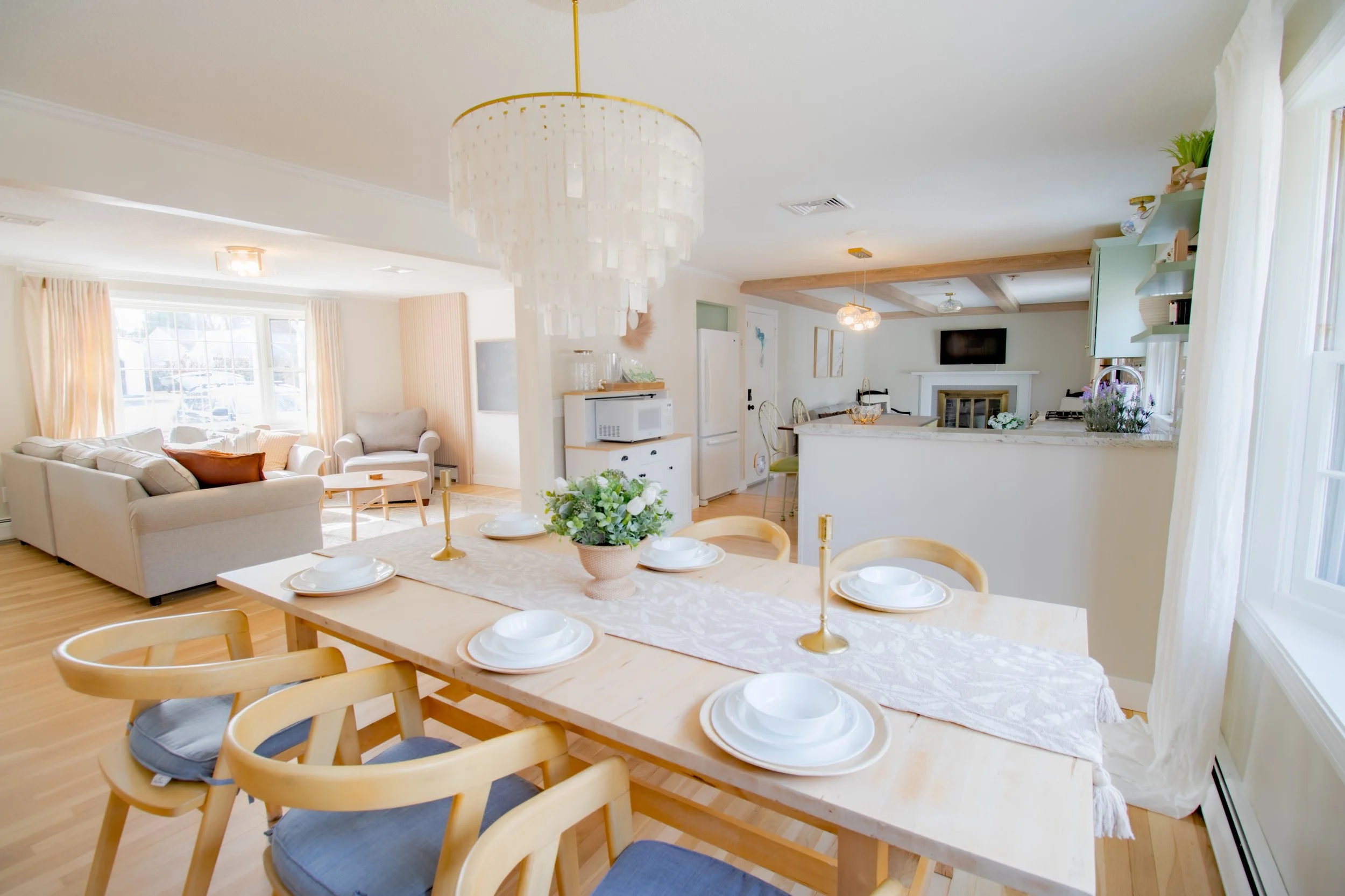 Whip up delicious meals in the well-stocked kitchen, equipped with updated appliances. Enjoy a casual bite at the island, or gather around the dining table with seating for eight for a more formal meal.
